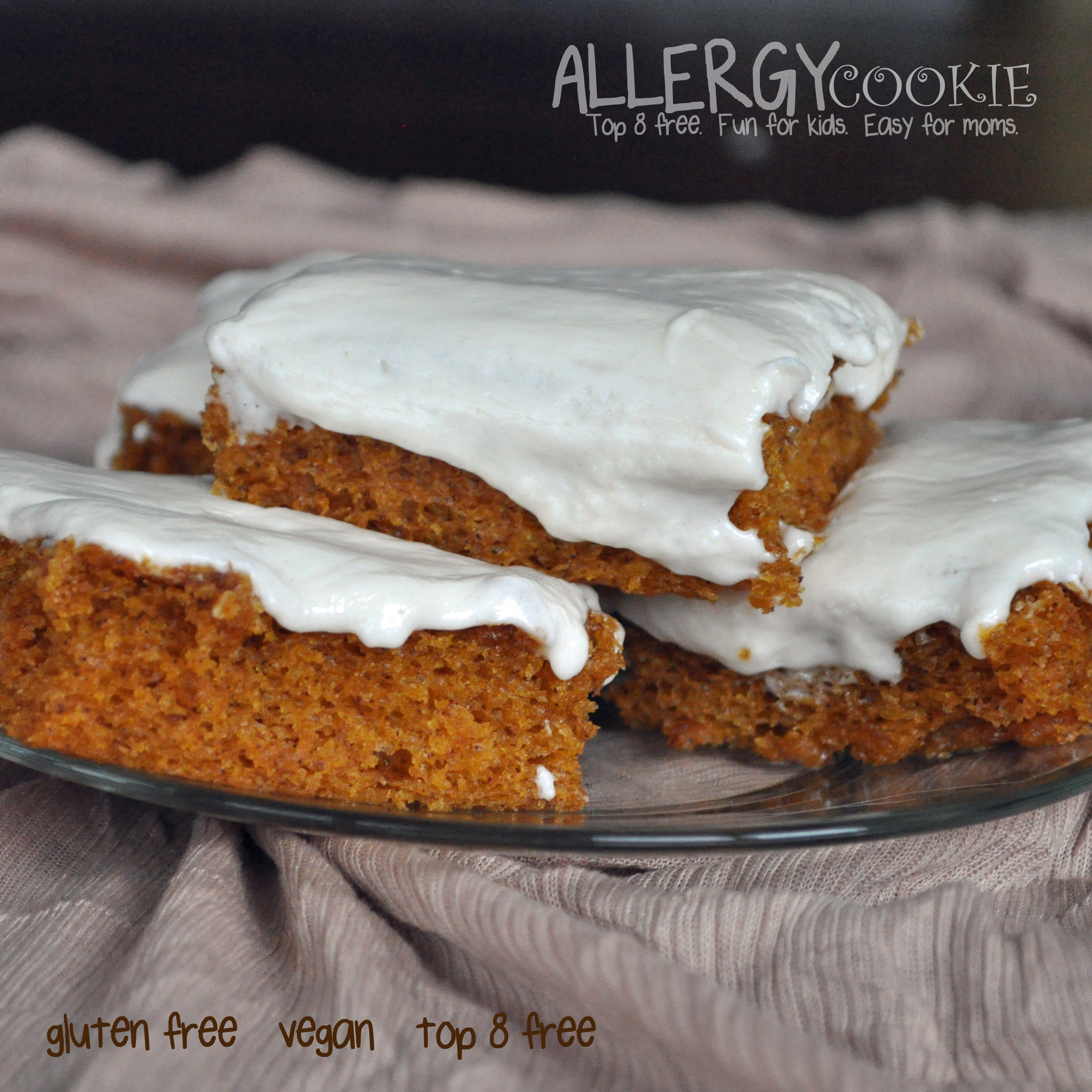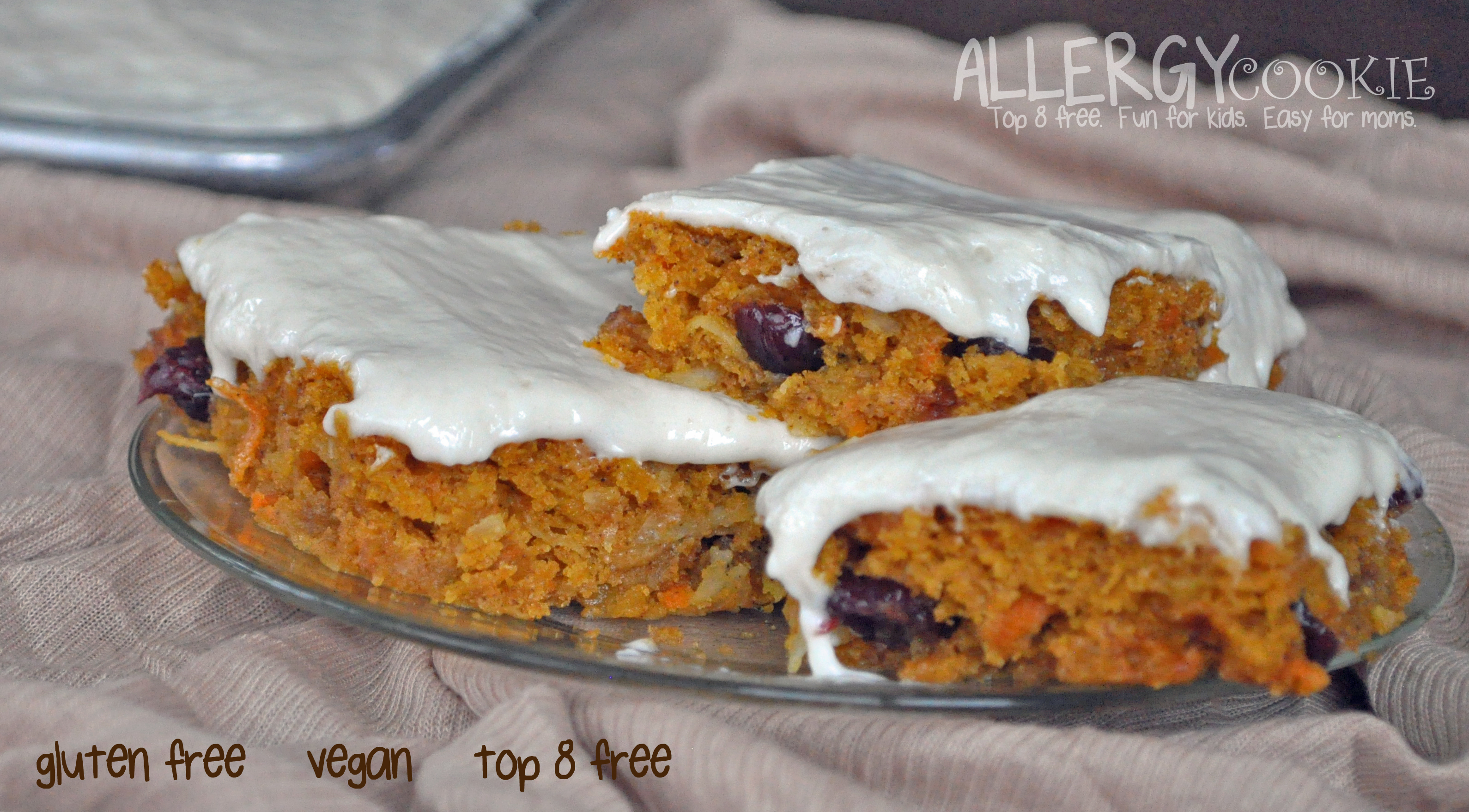 For the cream cheese frosting, we used Daiya Cream Cheese Like Spread and Soy Free Earth Balance and added a little extra powdered sugar for consistency. We also halved the recipe and still had plenty of frosting to cover our entire sheet cake. Yum!