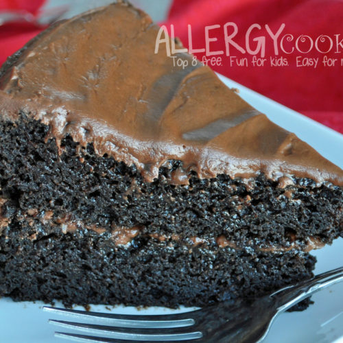 But when I finally made this gluten-free chocolate cake with chocolate buttercream frosting for my food-allergic son’s birthday, there was no going back. My husband asks me to make this cake whenever he can find a justifiable reason for it.