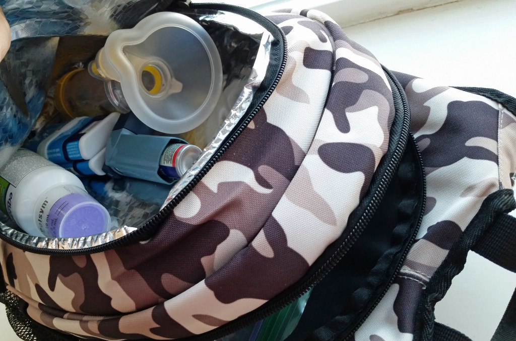 I wanted to replace the backpack with something better quality that was more durable and designed to last longer. Yet, I wanted something small and light that he would be interested in carrying on his own as well. The more I can get him used to carrying his own meds now, the easier it will be for him to remember to carry them on his own when he’s away from me and self-carrying has become essential.